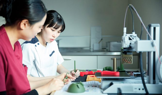 本学は複数の医療施設と併設しています。母体である「新田塚医療福祉センター」は「福井総合病院」を中核とする公益5法人10施設から構成されており、医療、介護、福祉、保健、保育、教育から、障がい者を支援する補装具制作まで、統合的な医療を学べる体制を完備しています。充実した実習環境で、医療の最前線の空気感を常に感じながら、生きた学びを習得することが本学最大の魅力です。