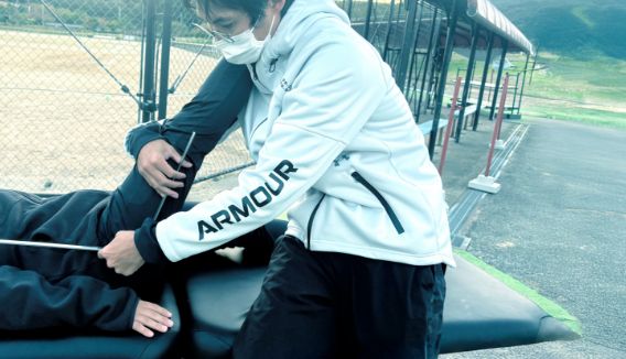 アスリートがパフォーマンスを最大限に発揮できるように、スポーツ現場へ直接出向いて、運動器傷害やスポーツ傷害を対象とした治療・傷害予防などの支援を行っています。