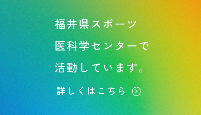 福井県より福井総合病院が指定された「福井県スポーツ医科学センター」は、日本スポーツ協会の公認アスレティックトレーナー資格を有する理学療法士(PT/AT)である大学教員を中心に、福井県内の全競技アスリートを対象とした総合的なサポートを行っています。